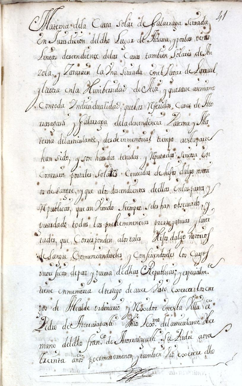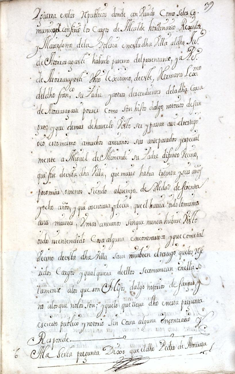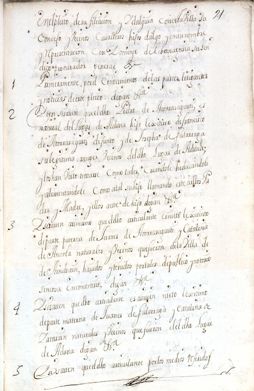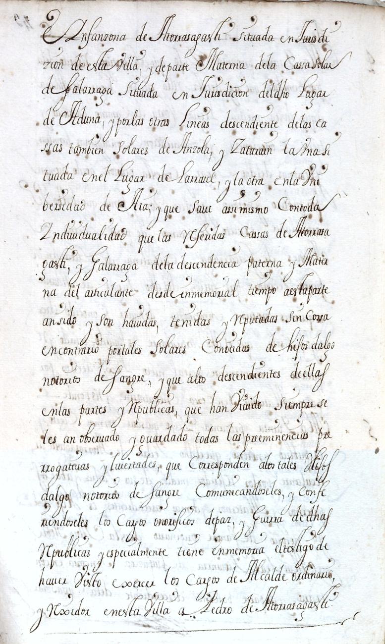 Hidalguias. Filiación de Pedro de Atorrasagasti y Galarraga, descendiente de la casa solar de Atorrasagasti de Andoain.
