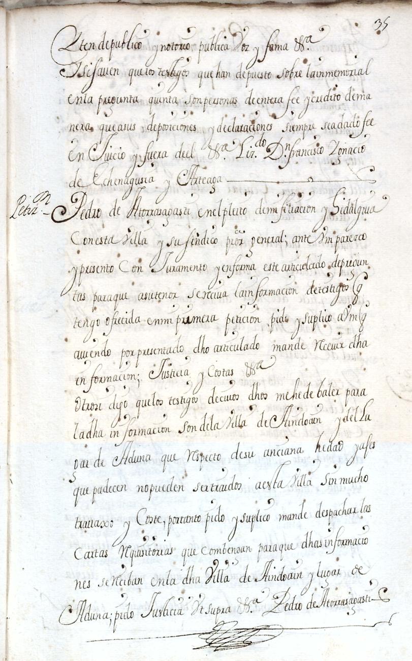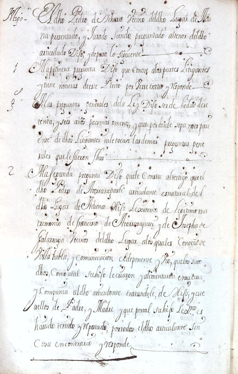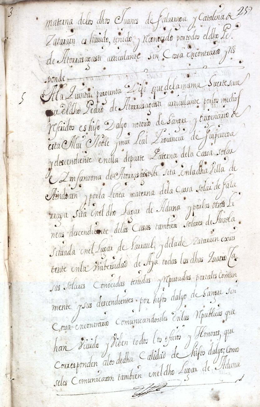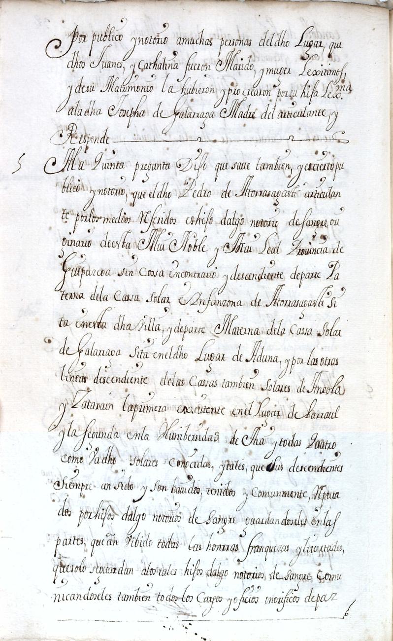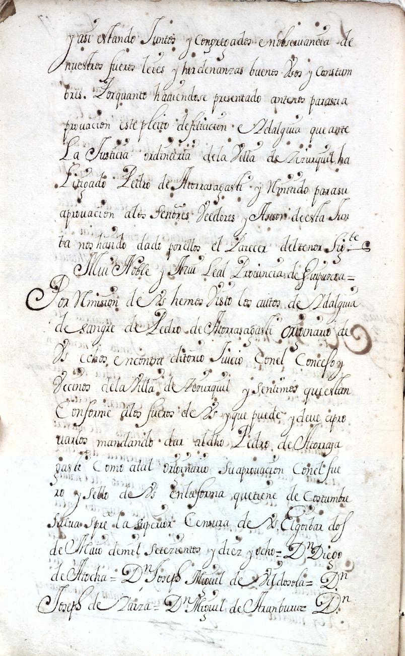 Hidalguias. Filiación de Pedro de Atorrasagasti y Galarraga, descendiente de la casa solar de Atorrasagasti de Andoain.