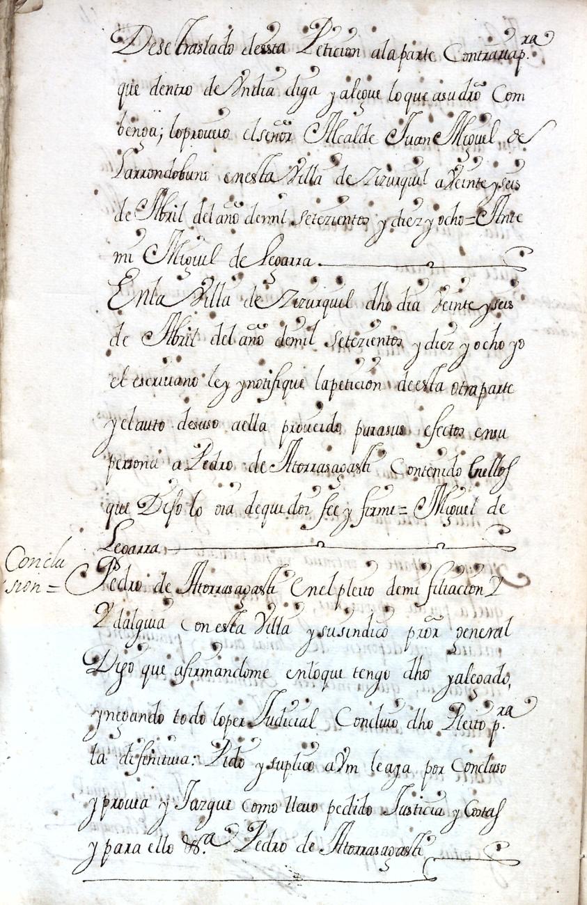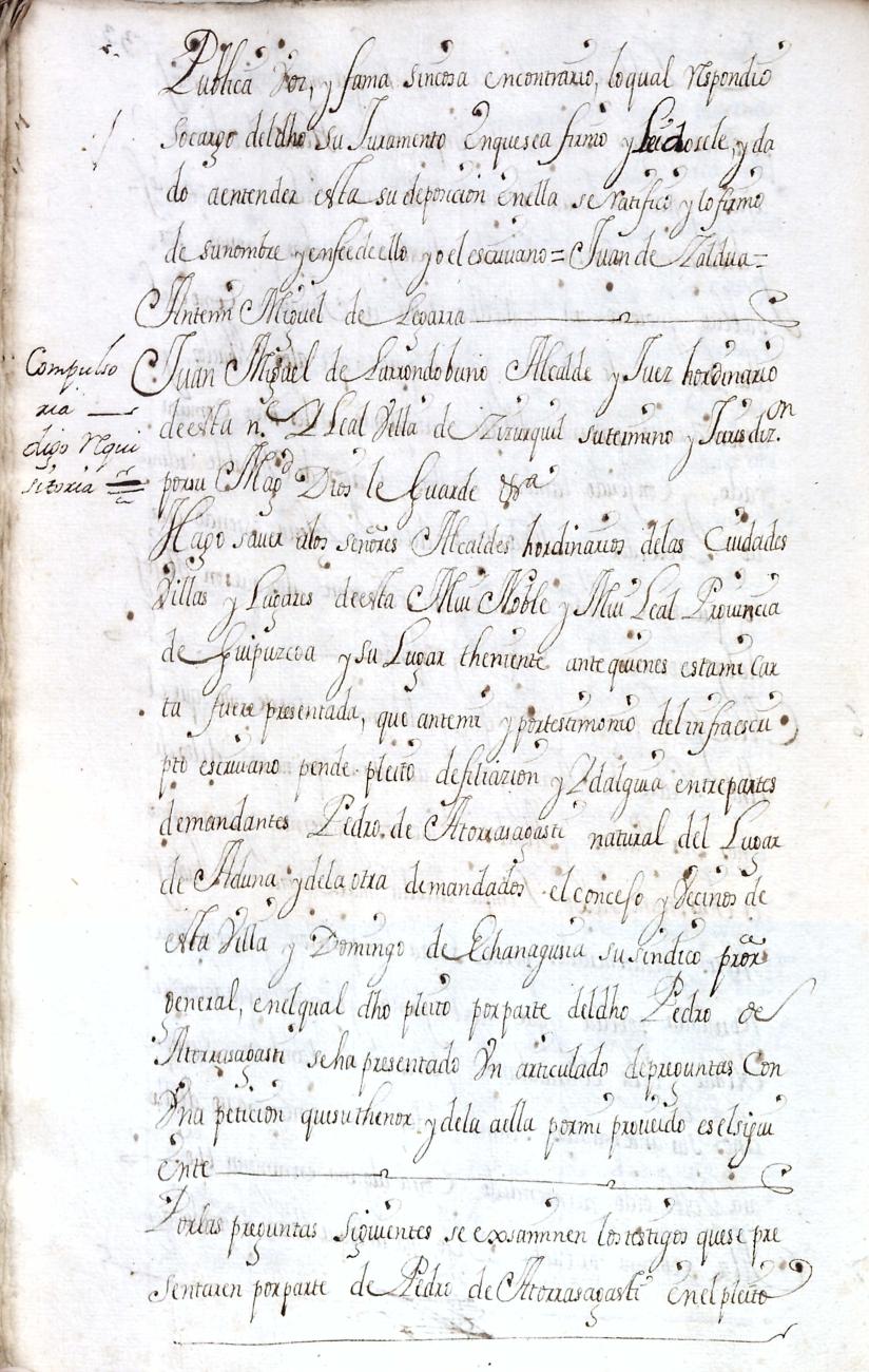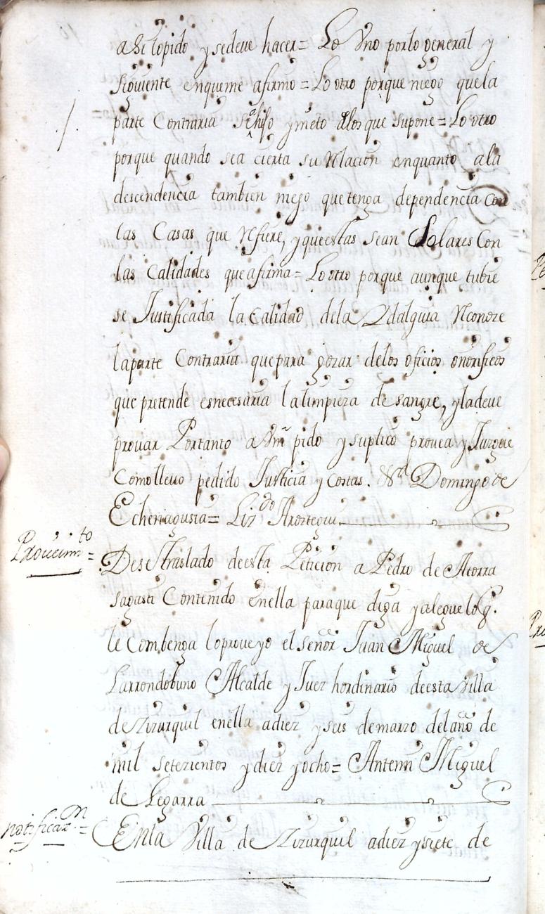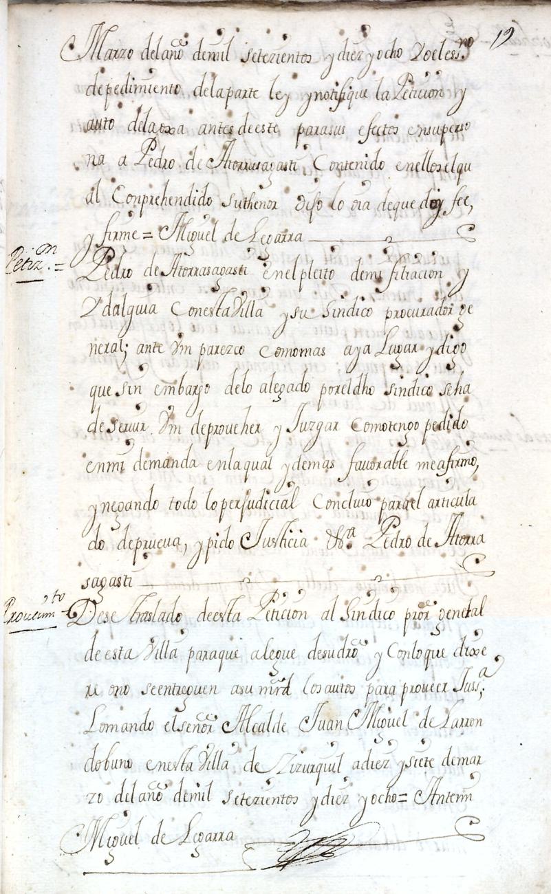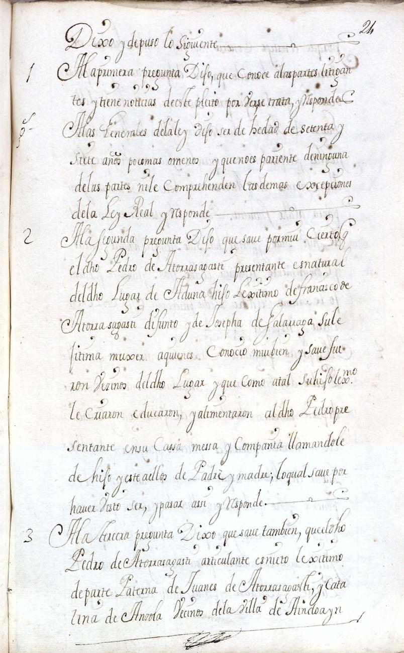 Hidalguias. Filiación de Pedro de Atorrasagasti y Galarraga, descendiente de la casa solar de Atorrasagasti de Andoain.