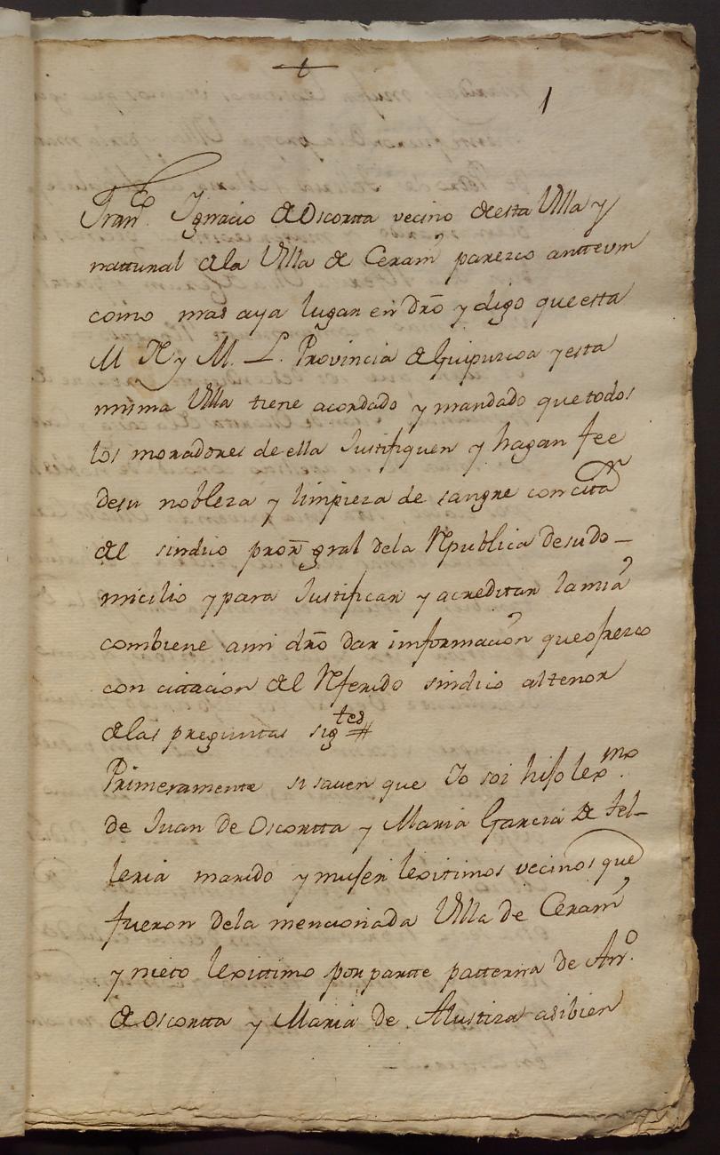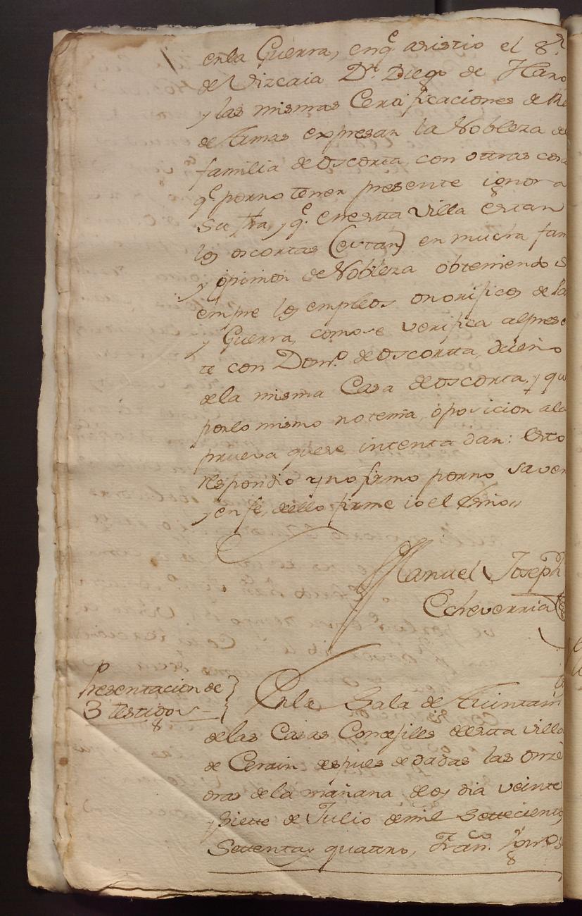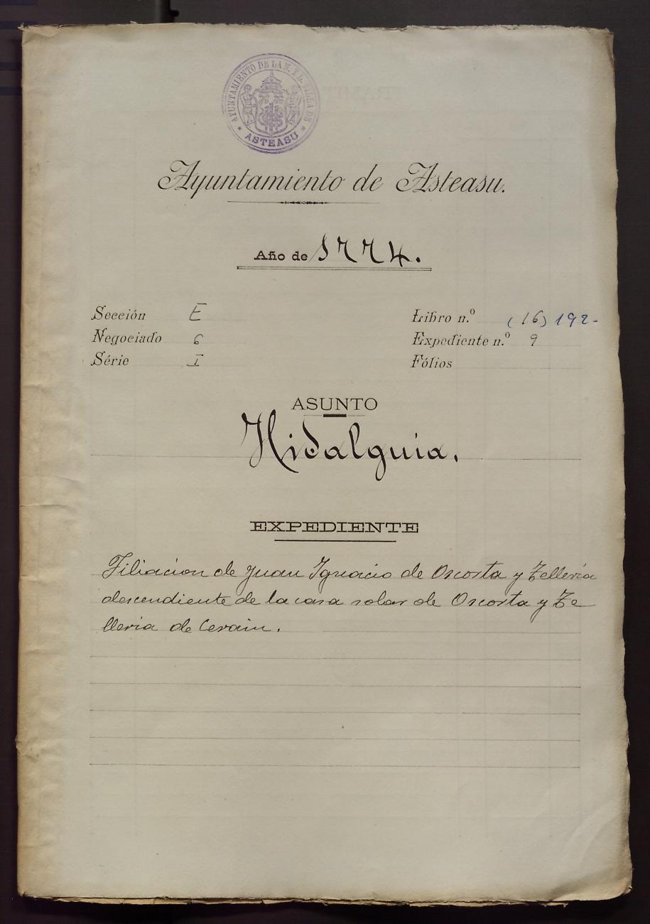 Hidalguias. Hidalguía de Juan Ignacio de Oscorta y Telleria, descendiente de la casa solar de Oscorta - Telleria de Zerain.