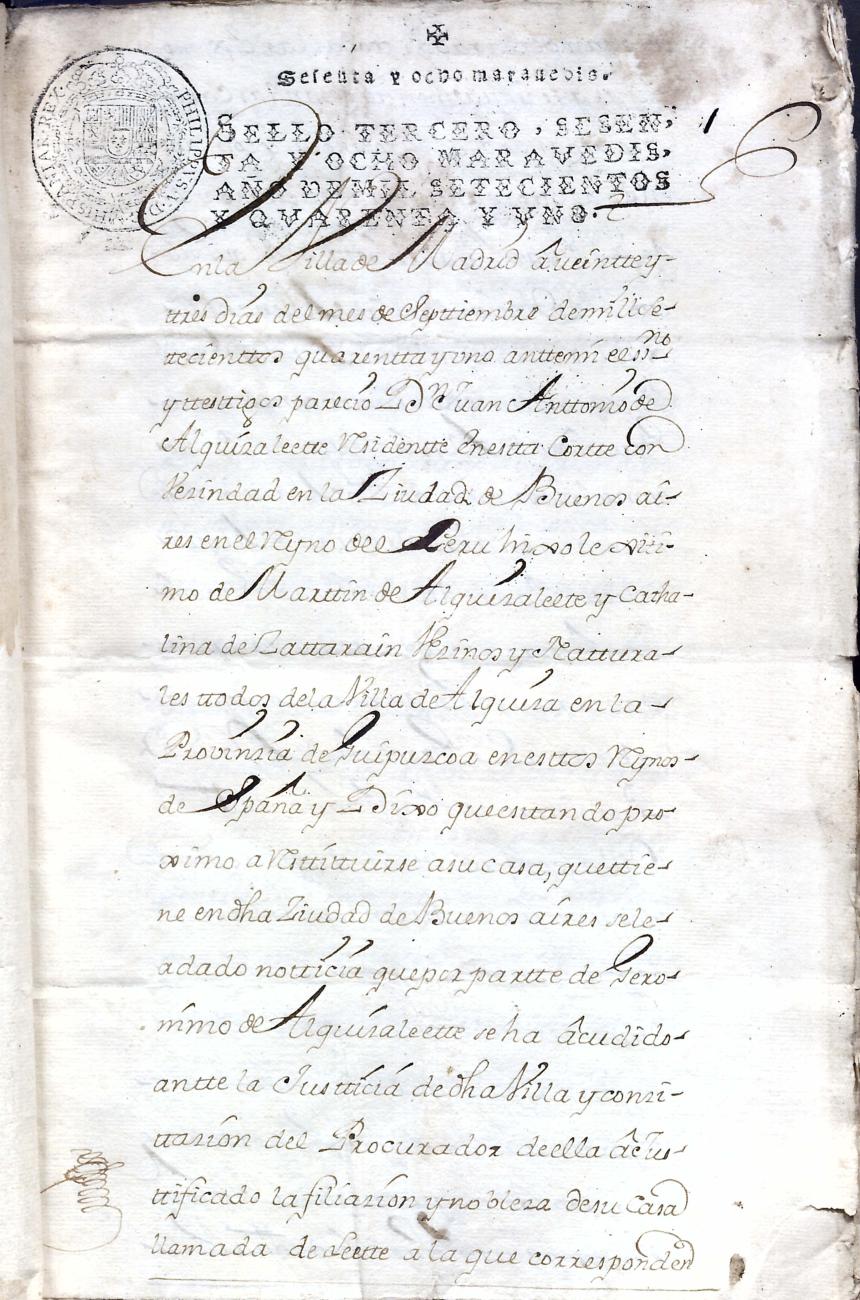 Juan Bautista Alkizalete eta ezkonkideen aitonsemetza. Alkizako Alkizalete oinetxekoak.