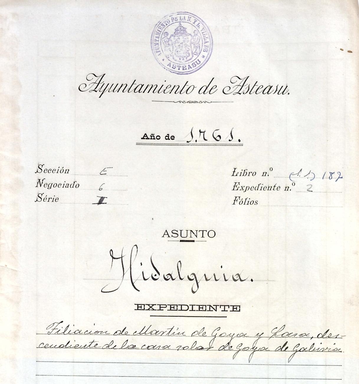 Log in to post commentsEdukiakDeskribapenaMartin Goia Lasaren aitonsemetza. Gabiriako Goia oinetxekoa.Oharrak- 23 orri.SailkapenaSailkapena1.1.14. KaparetasunakMultimediaIdentifikazioaAurreko IDa5338Signatura0187-02Dokumentu motaEspedienteaOntziaAUA-0187EgoeraBetetaEraikinaArtxiboaEpeaHasiera data1761AutoritateakSustatzaileakMartin Goia LasaToponimikoakGabiriaGoia etxeaAkta eratu