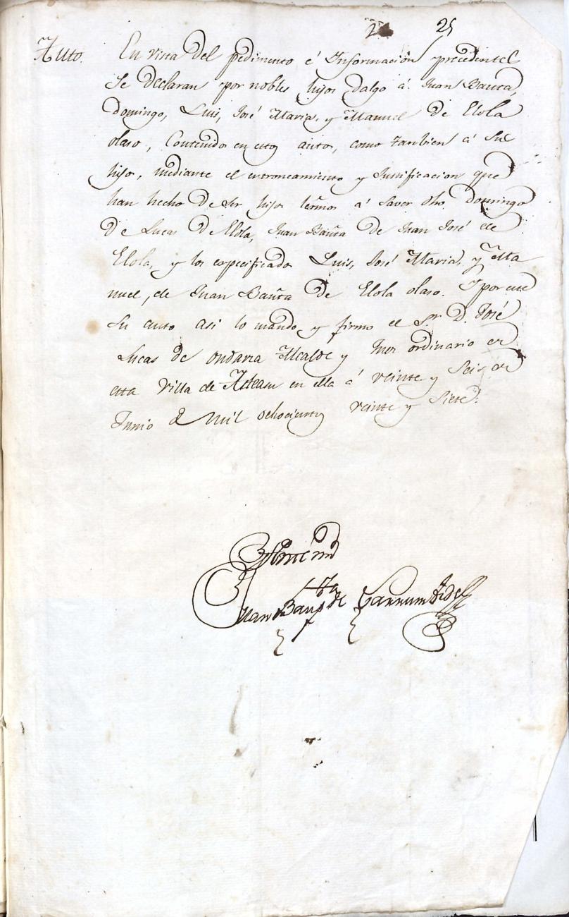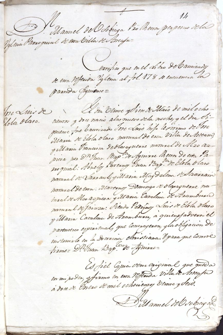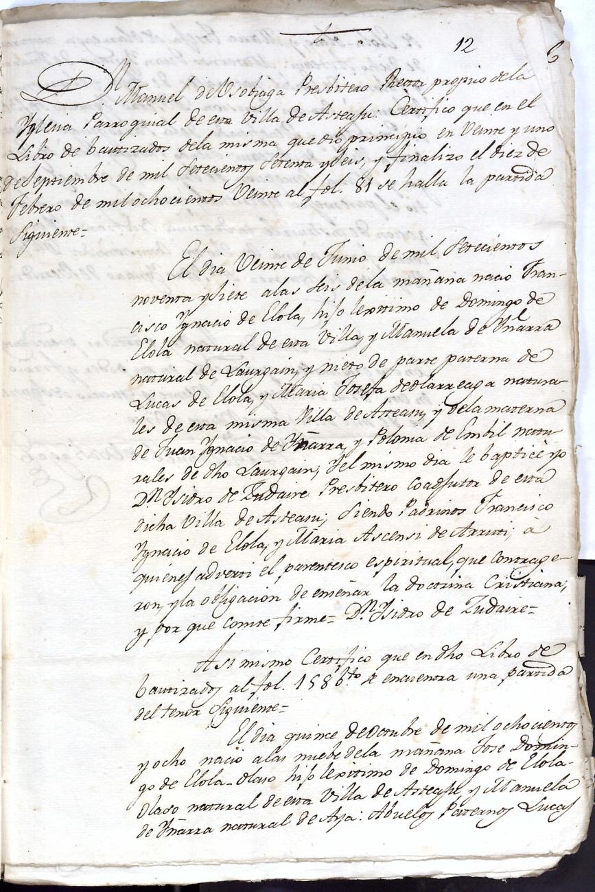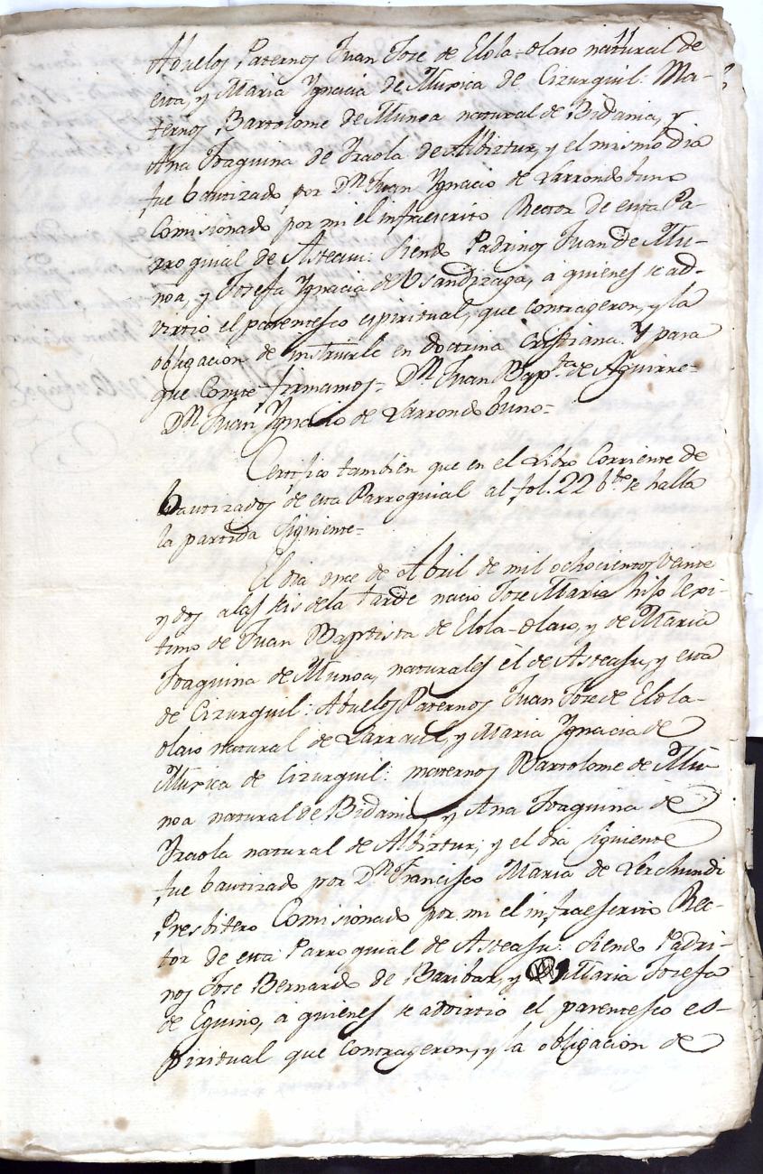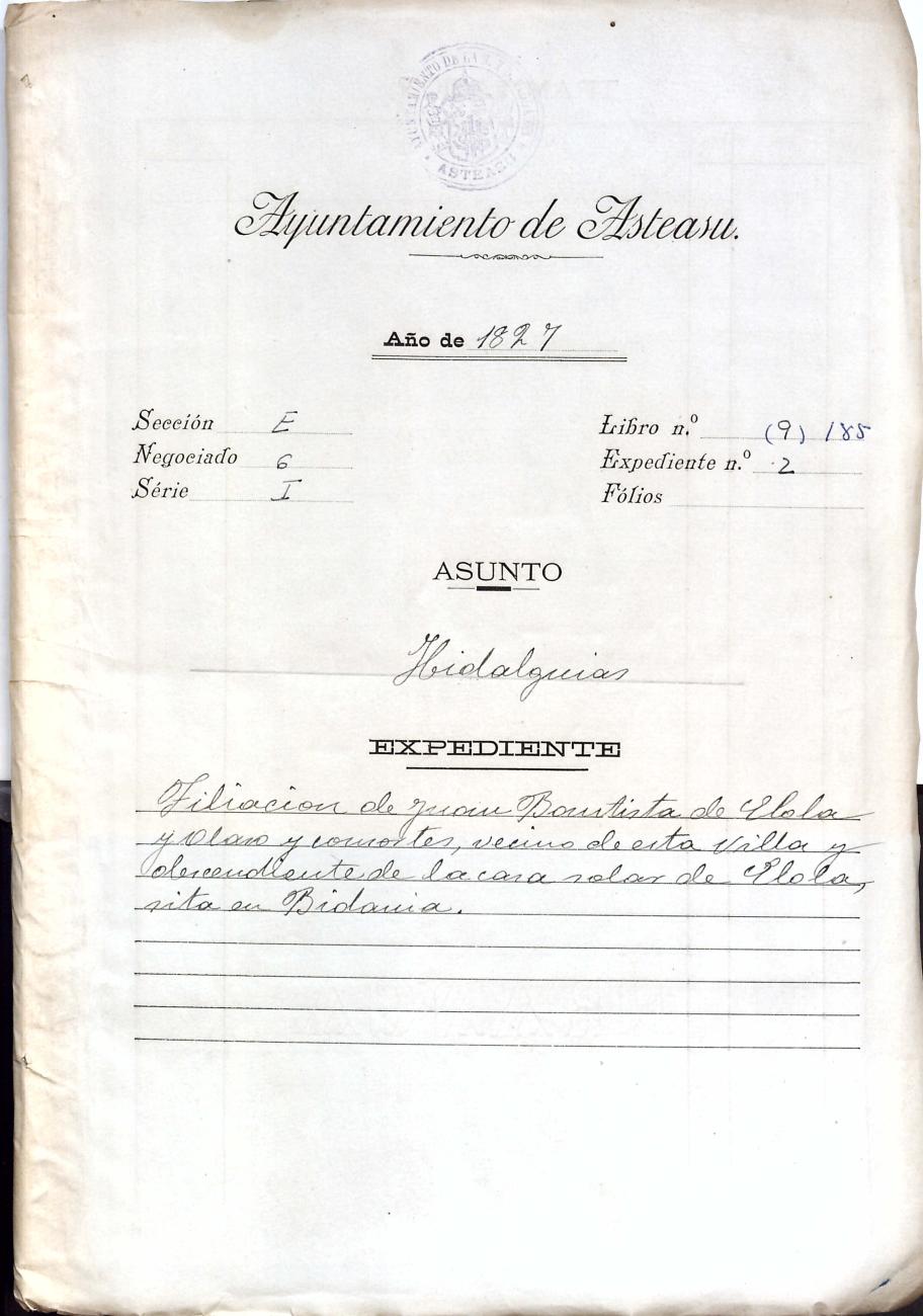 Log in to post commentsEdukiakDeskribapenaJuan Bautista Elola Olaso eta ezkonkideen aitonsemetza. Bidaniako Elola oinetxekoak.Oharrak- 25 orri.SailkapenaSailkapena1.1.14. KaparetasunakMultimediaIdentifikazioaAurreko IDa5341Signatura0185-02Dokumentu motaEspedienteaOntziaAUA-0185EgoeraBetetaEraikinaArtxiboaEpeaHasiera data1827AutoritateakSustatzaileakJuan Bautista Elola OlasoToponimikoakBidaniaElola etxeaAkta eratu