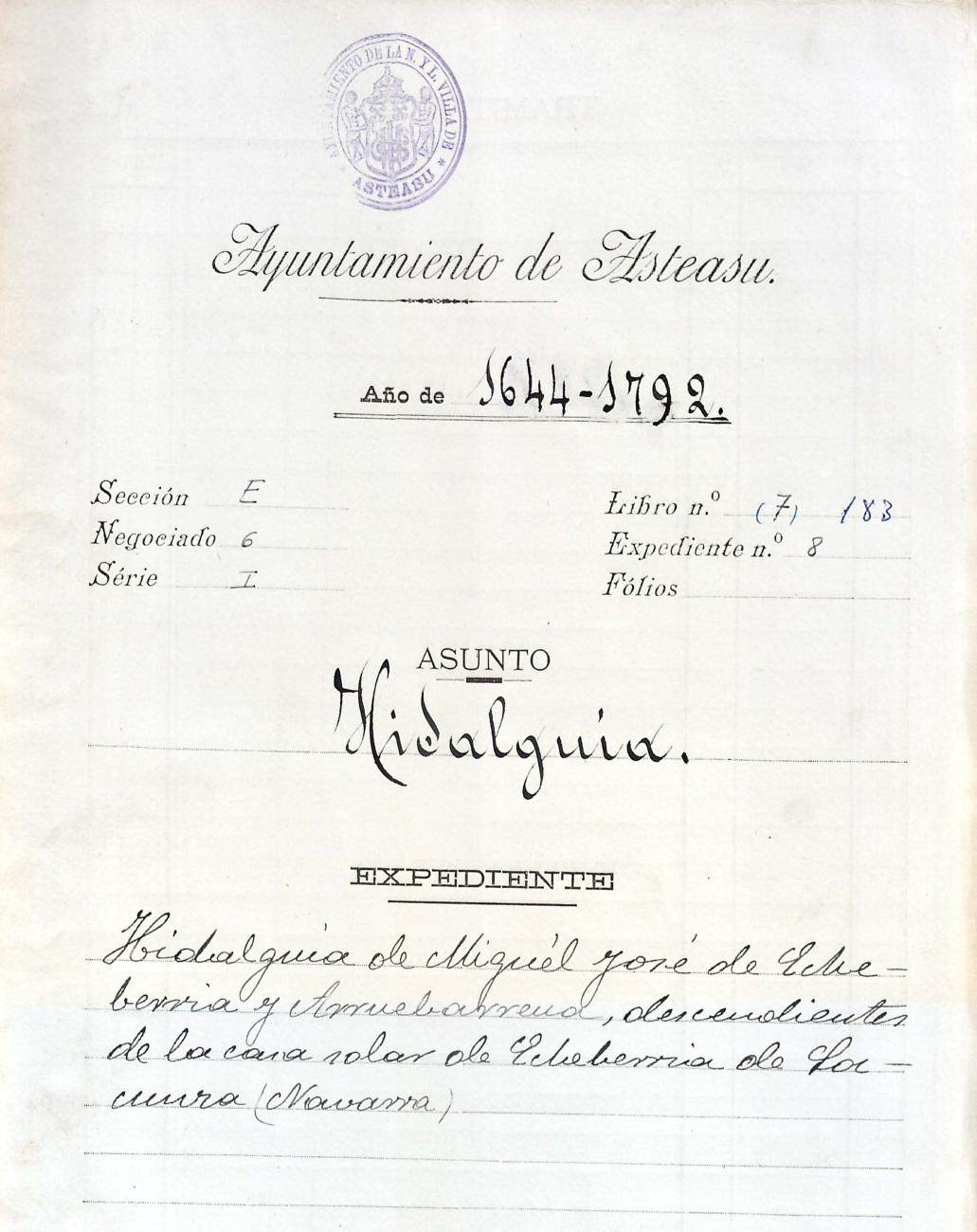 Miguel José Etxeberria Arruabarrenaren aitonsemetza. Lakunzako (Nafarroa) Etxeberria oinetxekoa.