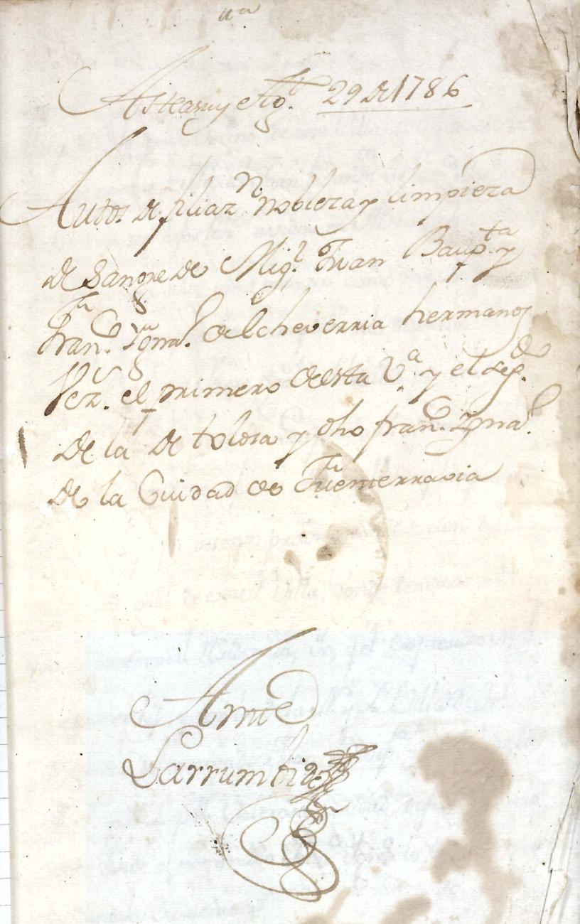 Log in to post commentsEdukiakDeskribapenaMiguel Etxeberria Olaziregi eta ezkonkideen aitonsemetza. Lakunzako (Nafarroa) oinetxekoak.Oharrak- 15 orri.SailkapenaSailkapena1.1.14. KaparetasunakMultimediaIdentifikazioaAurreko IDa5387Signatura0184-03Dokumentu motaEspedienteaOntziaAUA-0184EgoeraBetetaEraikinaArtxiboaEpeaHasiera data1786AutoritateakSustatzaileakMiguel Etxeberria OlaziregiAkta eratu