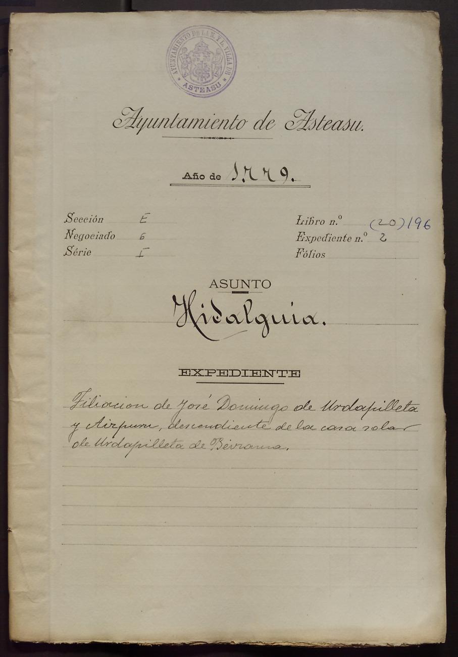 Log in to post commentsEdukiakDeskribapenaJosé Domingo Urdapilleta Aizpururen aitonsemetza. Beizamako Urdapilleta oinetxekoa.SailkapenaSailkapena1.1.14. KaparetasunakMultimediaIdentifikazioaAurreko IDa6242Signatura0196-02Dokumentu motaEspedienteaOntziaAUA-0196EgoeraBetetaEraikinaArtxiboaEpeaHasiera data1779AutoritateakSustatzaileakJosé Domingo Urdapilleta AizpuruToponimikoakBeizamaUrdapilleta etxeaAkta eratu